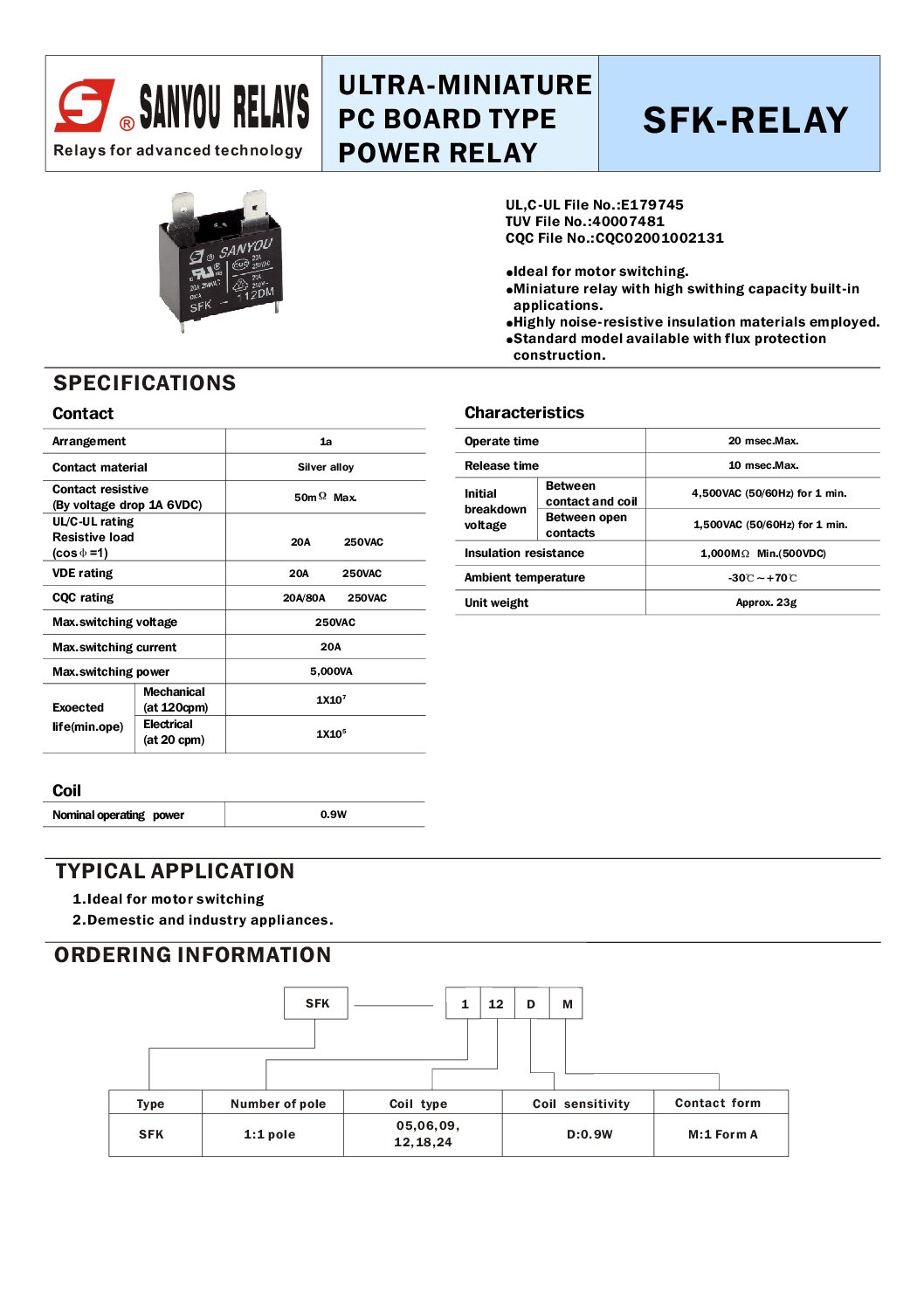 1 contact 25A @ 250Vac